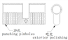 Strypų krautuvų automatinis padavimas, išorinis poliravimas suspaudimu, skylučių išmušimas, automatinis iškrovimas.